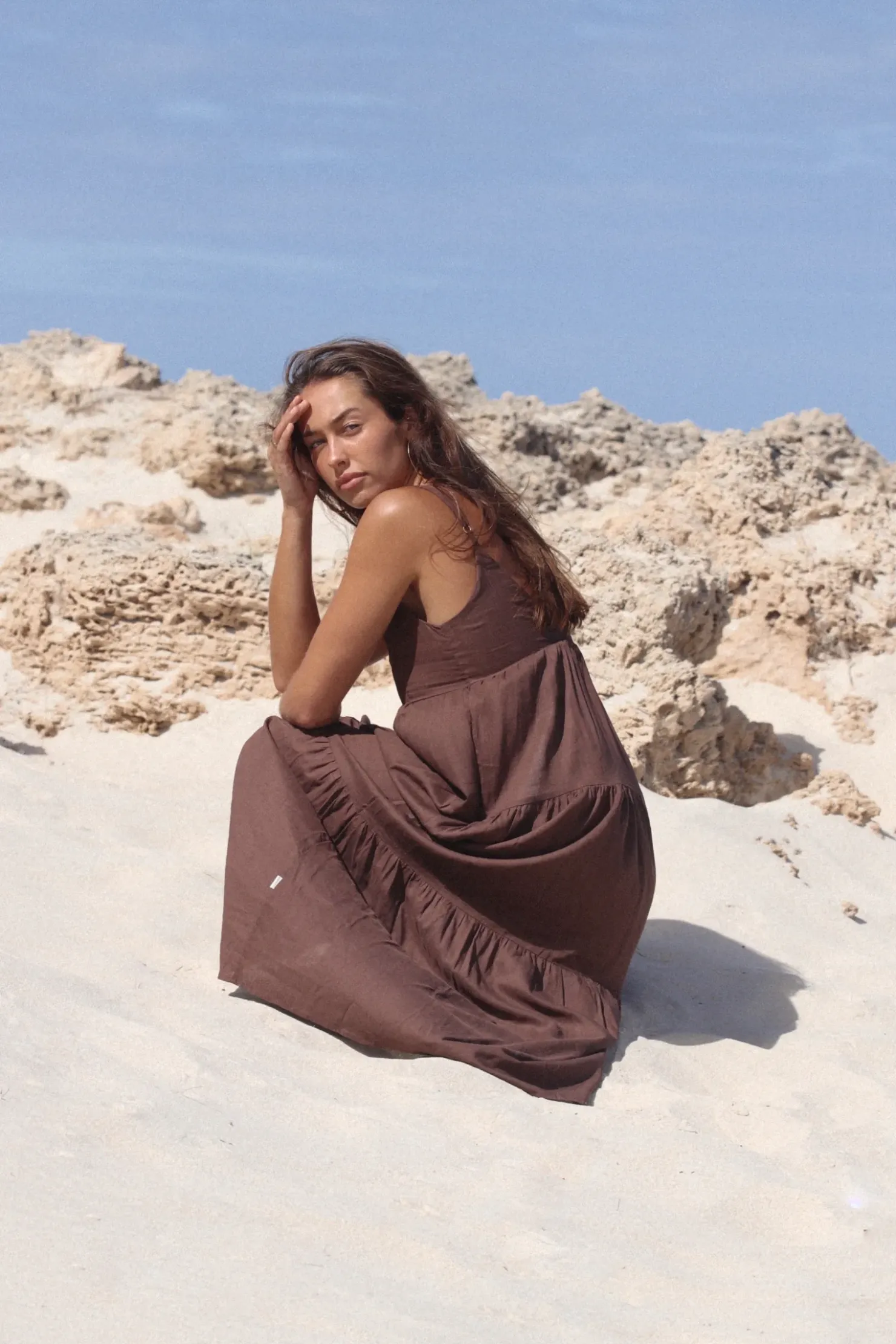 With a fitted bodice, deep V neckline and full sweeping hemline, the Classic Tiered Midi Dress is sure to make a statement. Delivering an elegant coastal design that can be worn between dinner dates, and beach walks both.