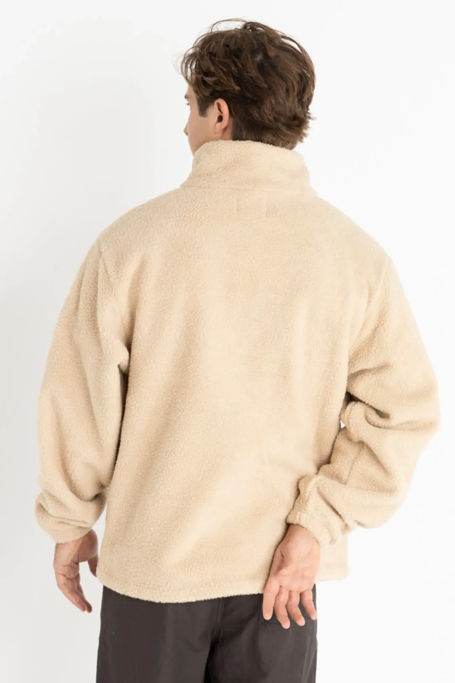 The Dusty Quarter Zip offers an unstructured, relaxed fit with a fleece paisley center panel. Subtle front detailing and a quarter zip make it a cozy yet stylish choice for laid-back coastal evenings.