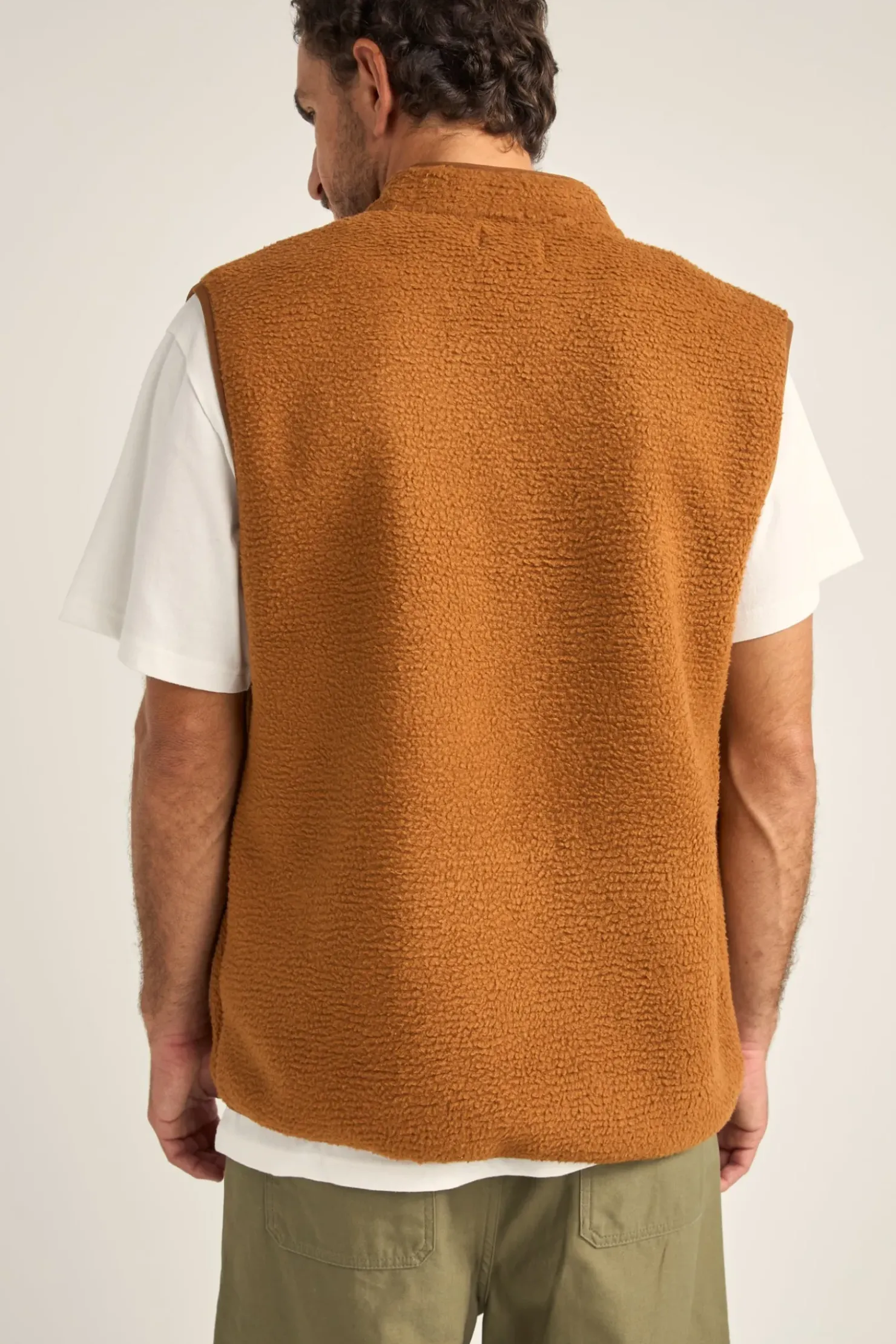 Introducing the Marco Sherpa Vest in Tobacco, a boxy vest designed for coastal style. Featuring a cozy sherpa texture, contrast trim, and zipper closure, it’s perfect for layering and adding warmth to your look with a touch of rugged charm.