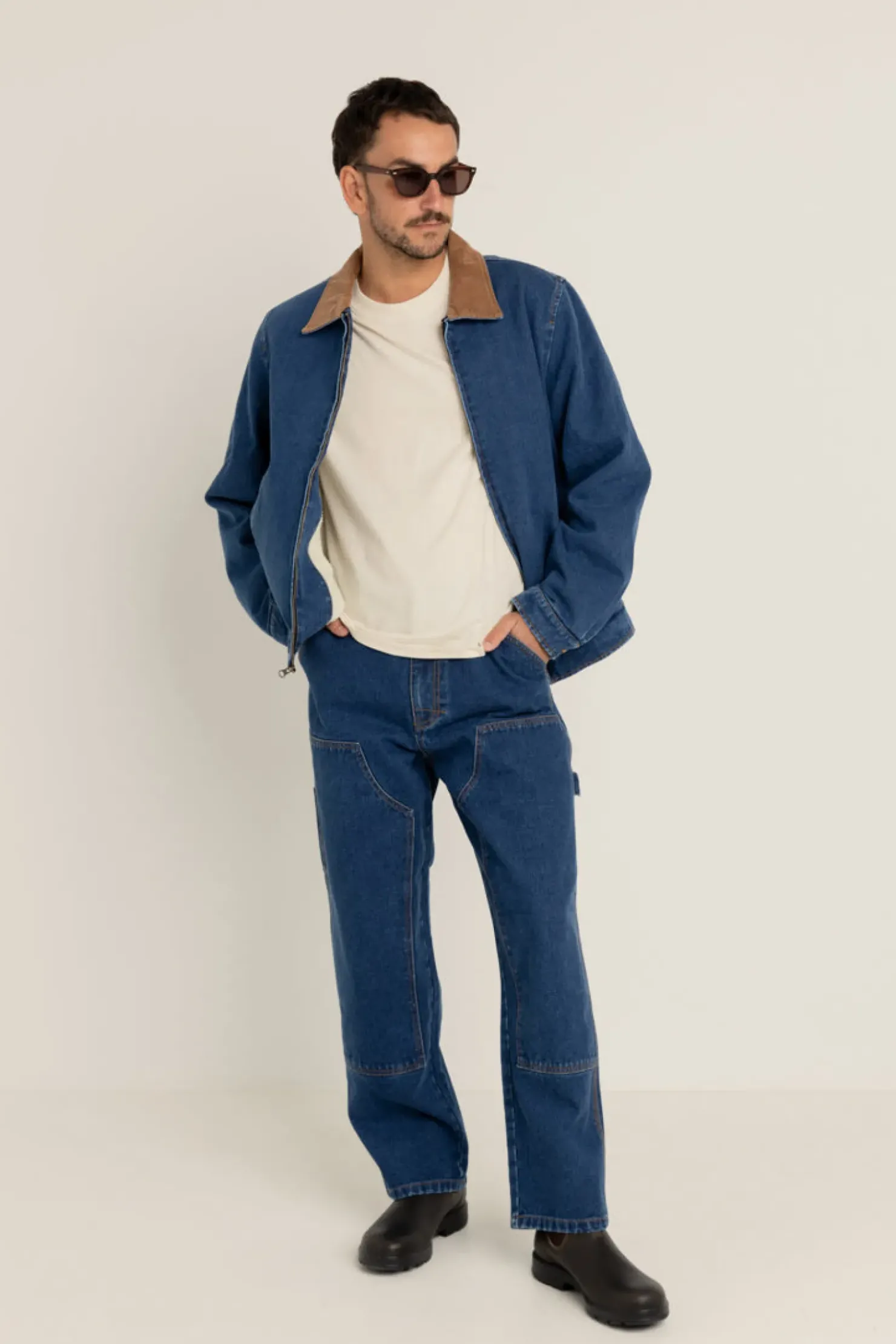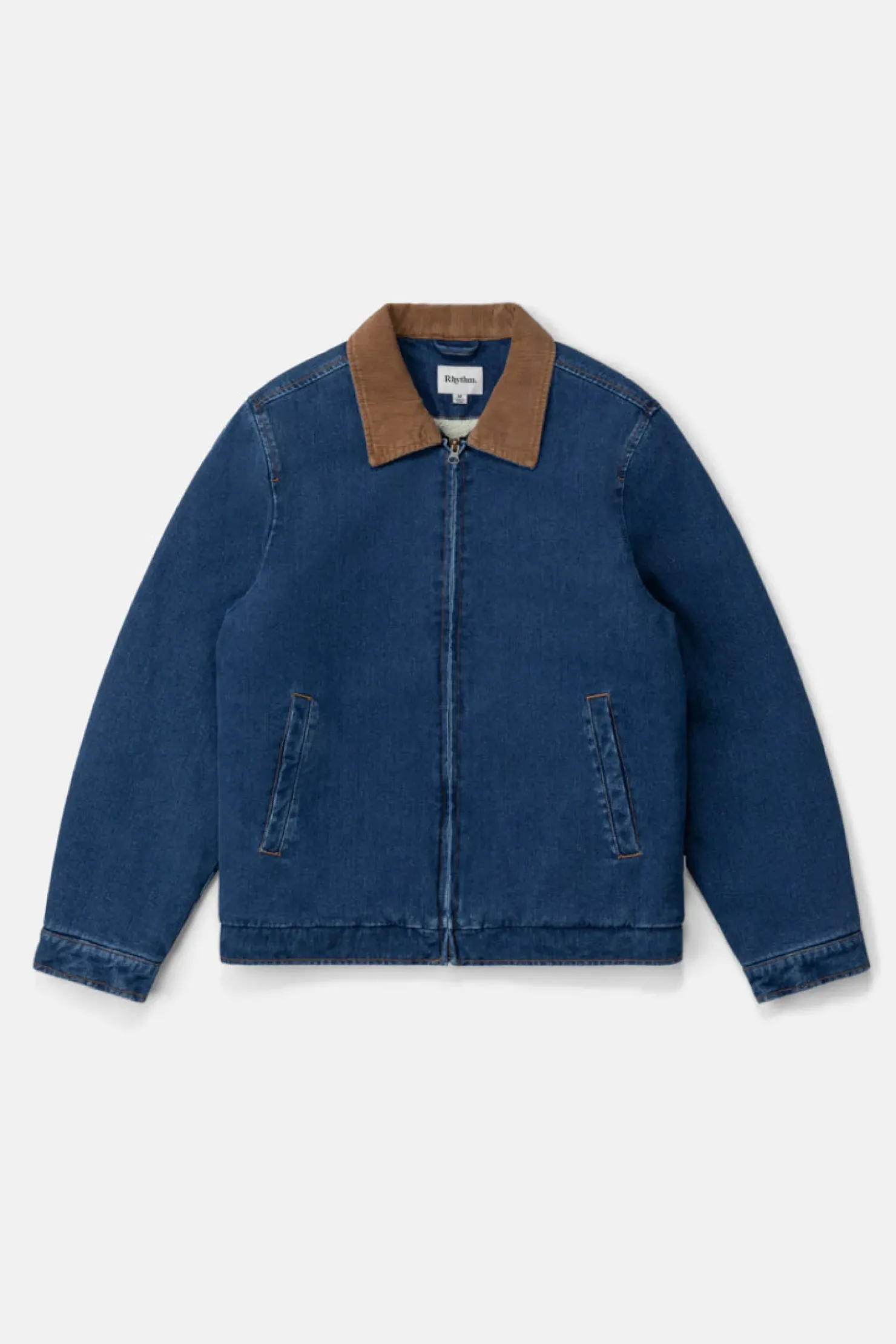 A heavy-weight washed denim jacket with a contrast cord collar, branded trims, and a button-down front. Vintage-inspired for effortless coastal layering.
