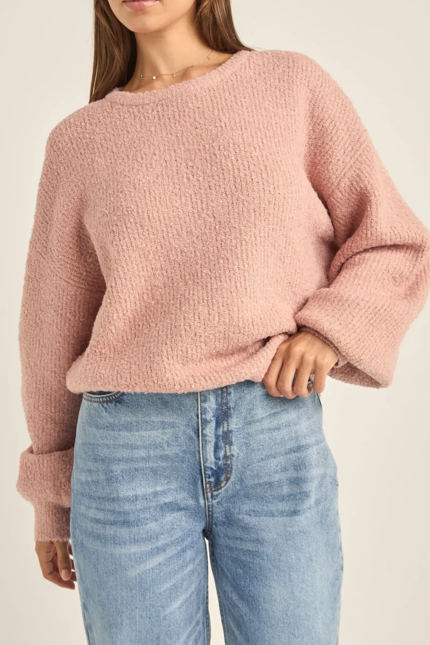 The Pink Quinn Knit Jumper wraps you in a cosy layer of soft acrylic, nylon, wool, and spandex blend. With a relaxed fit, balloon sleeves and crew neck, a warm addition to your coastal outings. Featuring rib ban at the neckline, hem and cuffs, it perfectly captures the sweet comfort of breezy beach mornings.