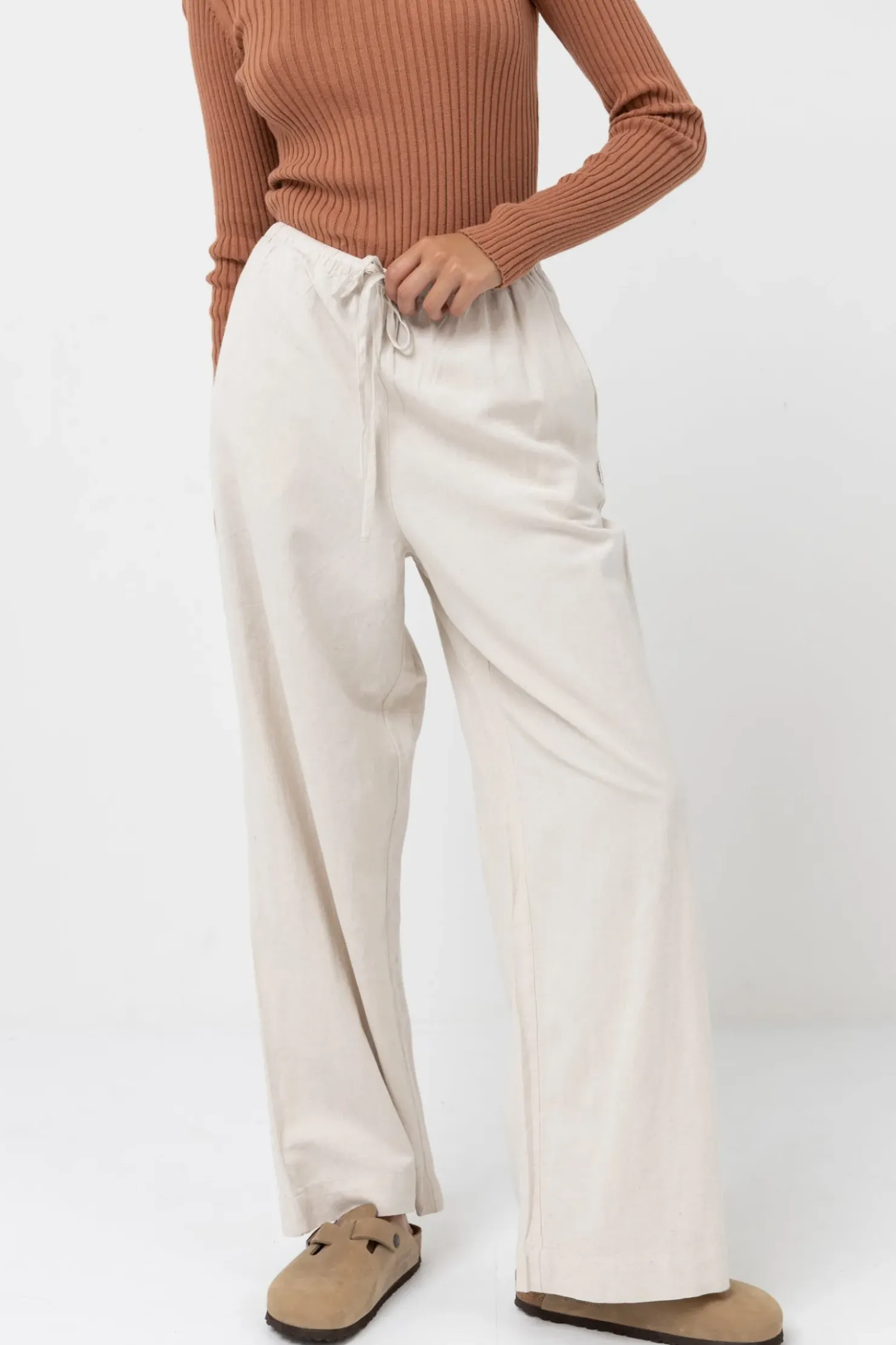For soft sunny days moving through the cool breeze, the Classic Drawstring Pant is cut from a breathable blend of ramie fibres with an elasticated waist front, and channelled drawcord in a lovably comfortable wide fit.