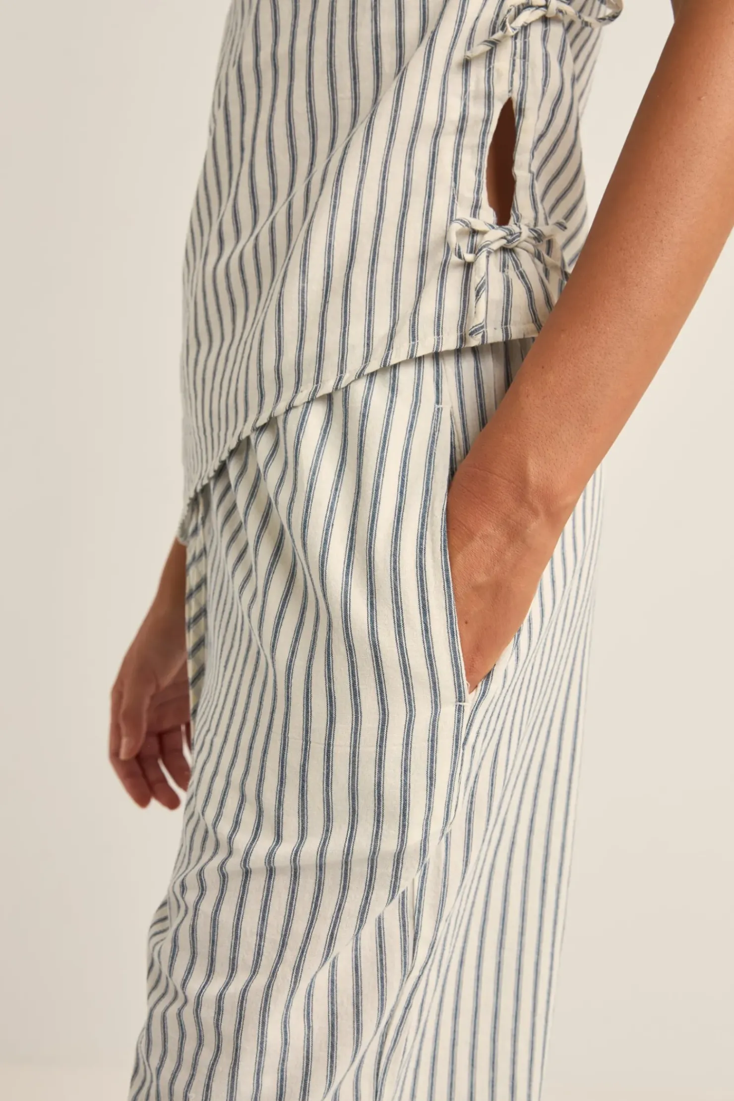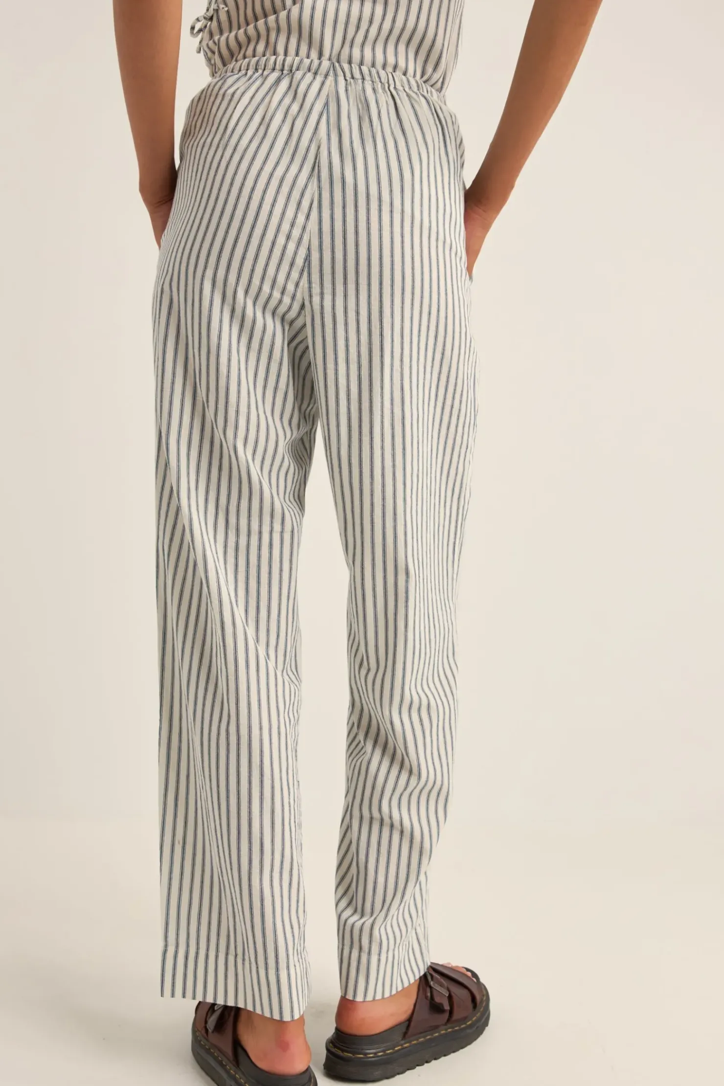 The Frankie Elastic Pant standard fit and breezy design make these pants a seaside essential, embodying relaxed elegance. The elastic waist with a drawcord ensures a personalized fit for comfort and versatility. With no lining, these pants are perfect for beachy days, offering a lightweight and carefree option that seamlessly blends comfort with coastal chic.