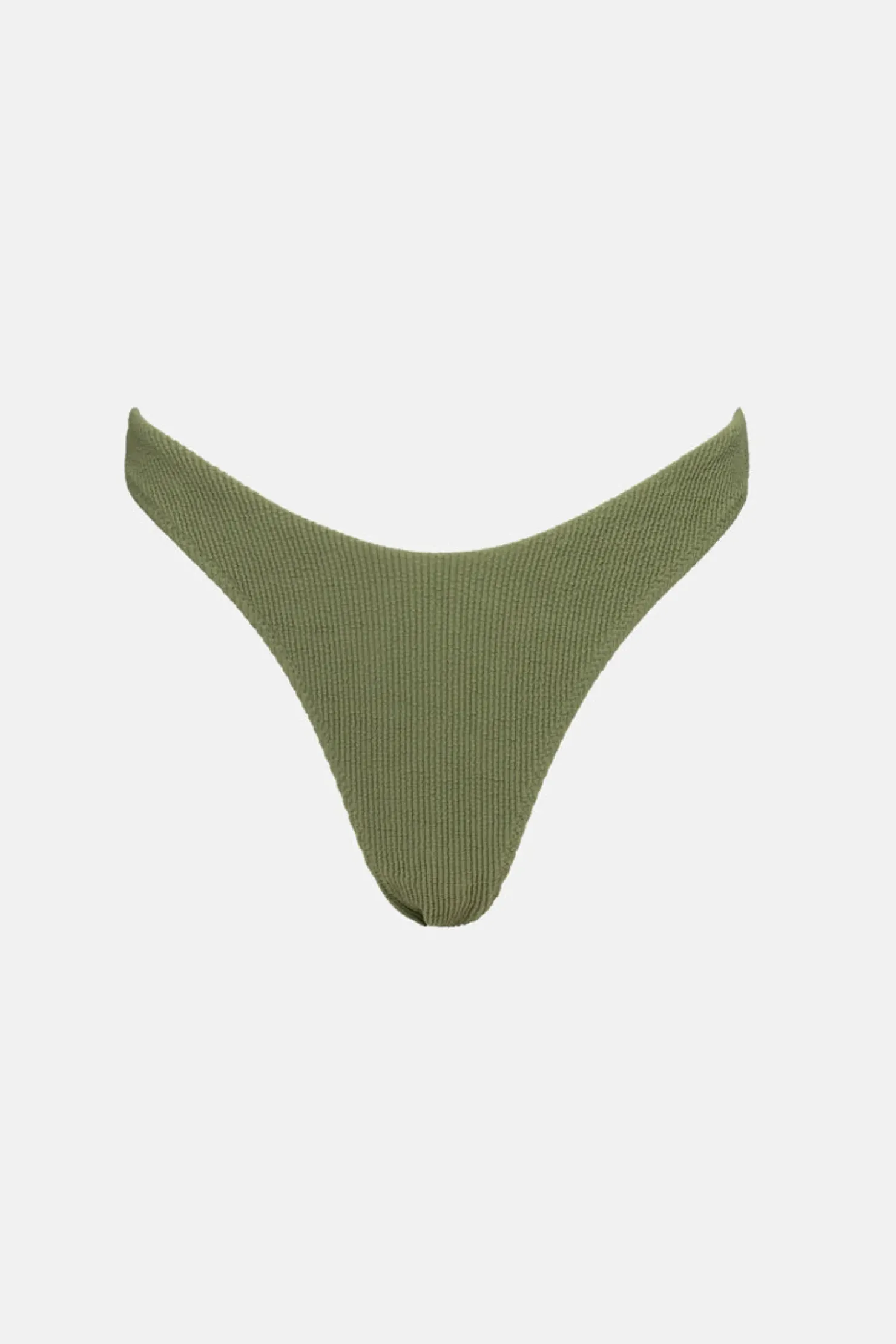In an olive tone with white contrast binding, this high-cut pant delivers a chic, high-rise fit. The Rhythm metal coin logo adds a finishing touch.
