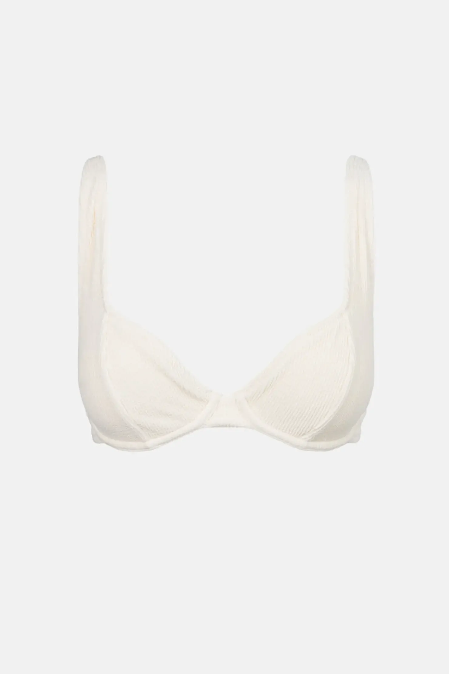 The crème underwire top combines support with style, featuring adjustable straps, a tie-back closure, and a flattering gathered bust. Ideal for A-D cup sizes.