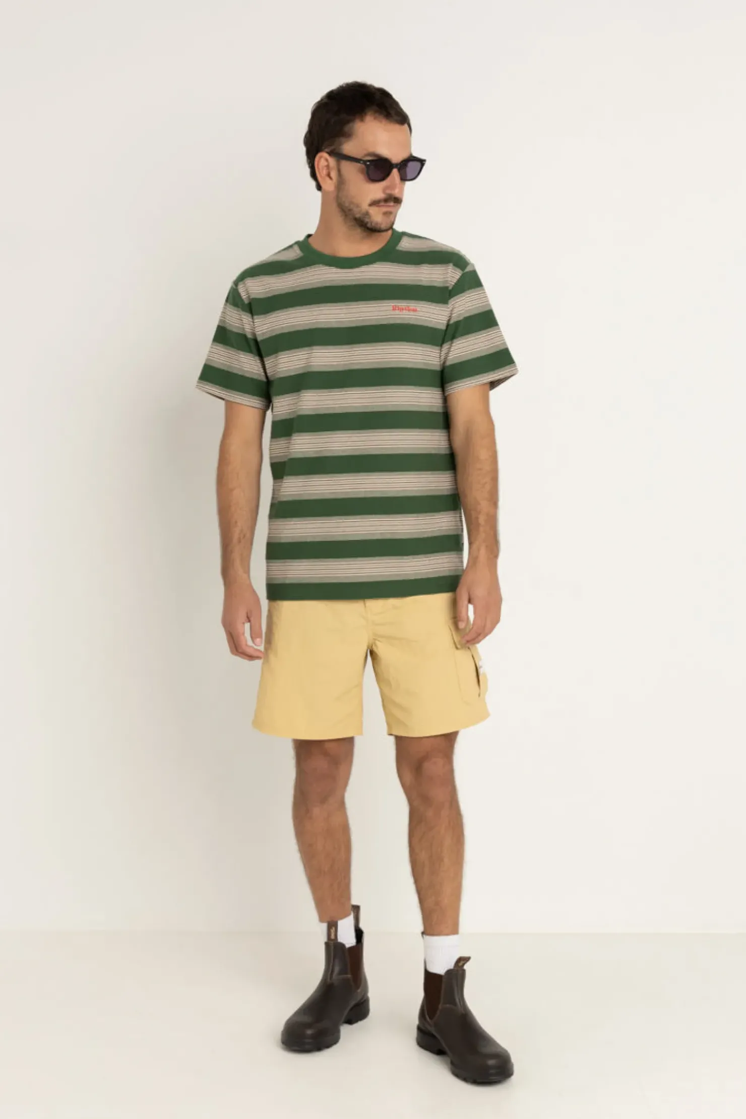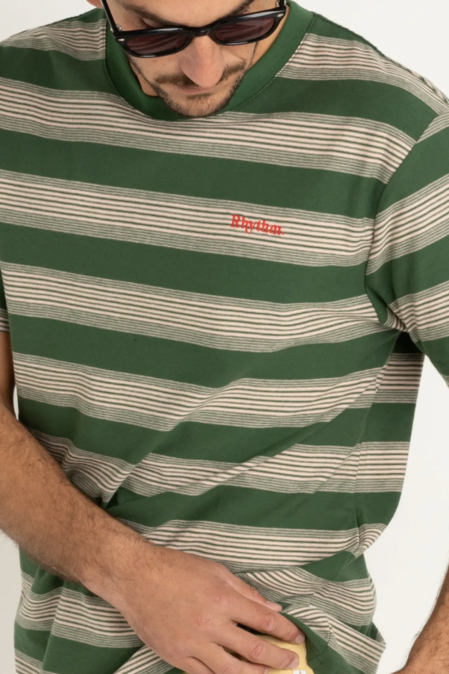 Elevate your casual wardrobe with the Echo Stripe SS T-Shirt. This relaxed fit tee features a warped stripe design and a small embroidered emblem, offering a laid-back yet refined look. Perfect for coastal days.