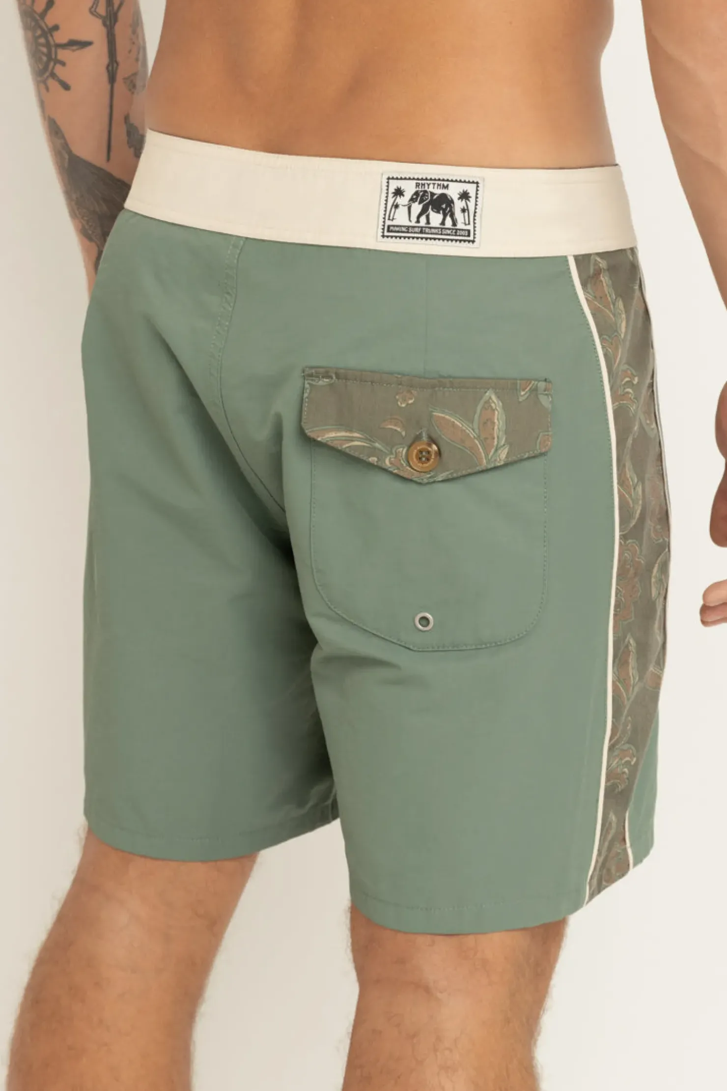 19-inch trunks with side panel and piping details, offering a stylish and functional choice for beach and surf.