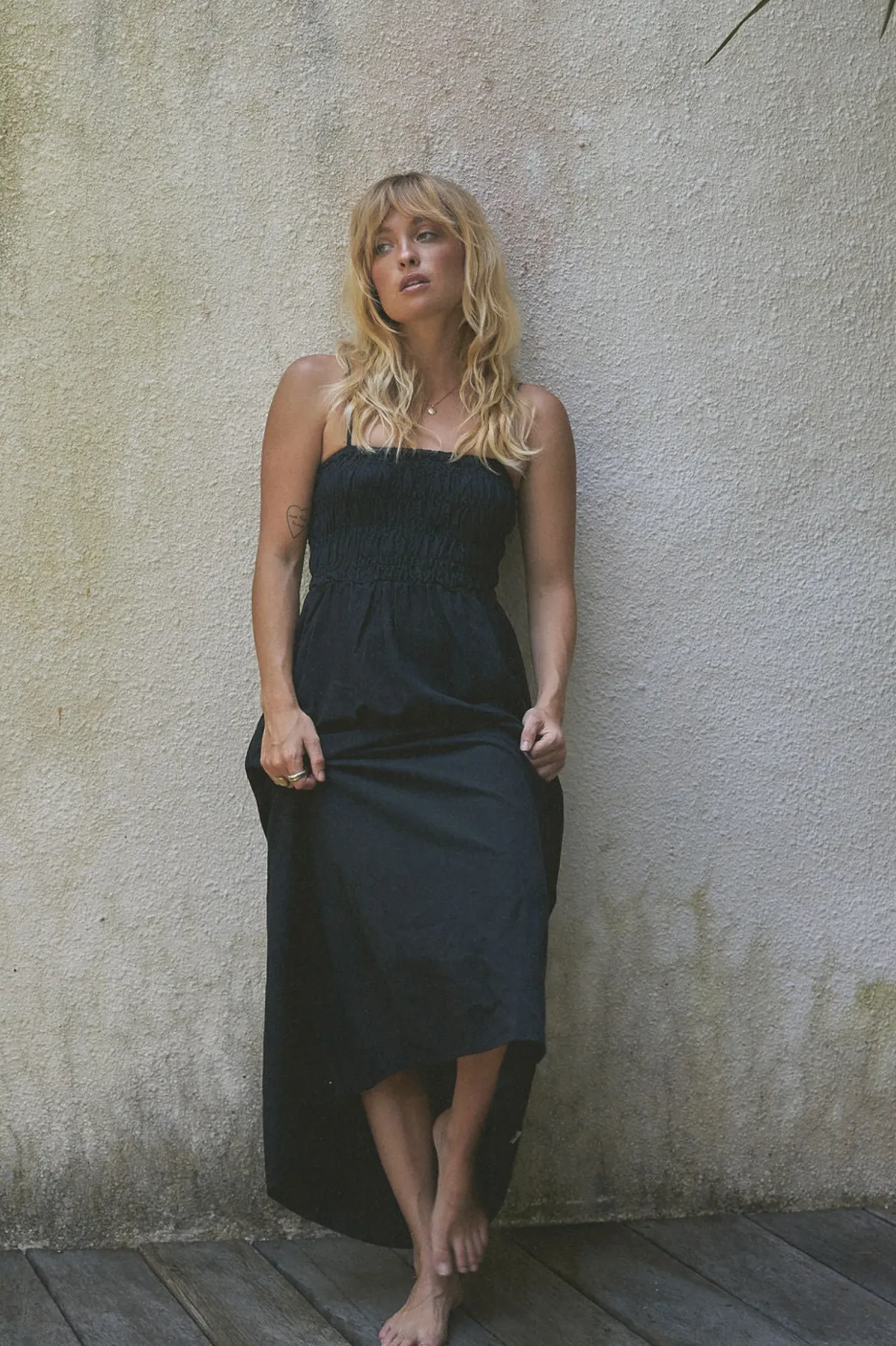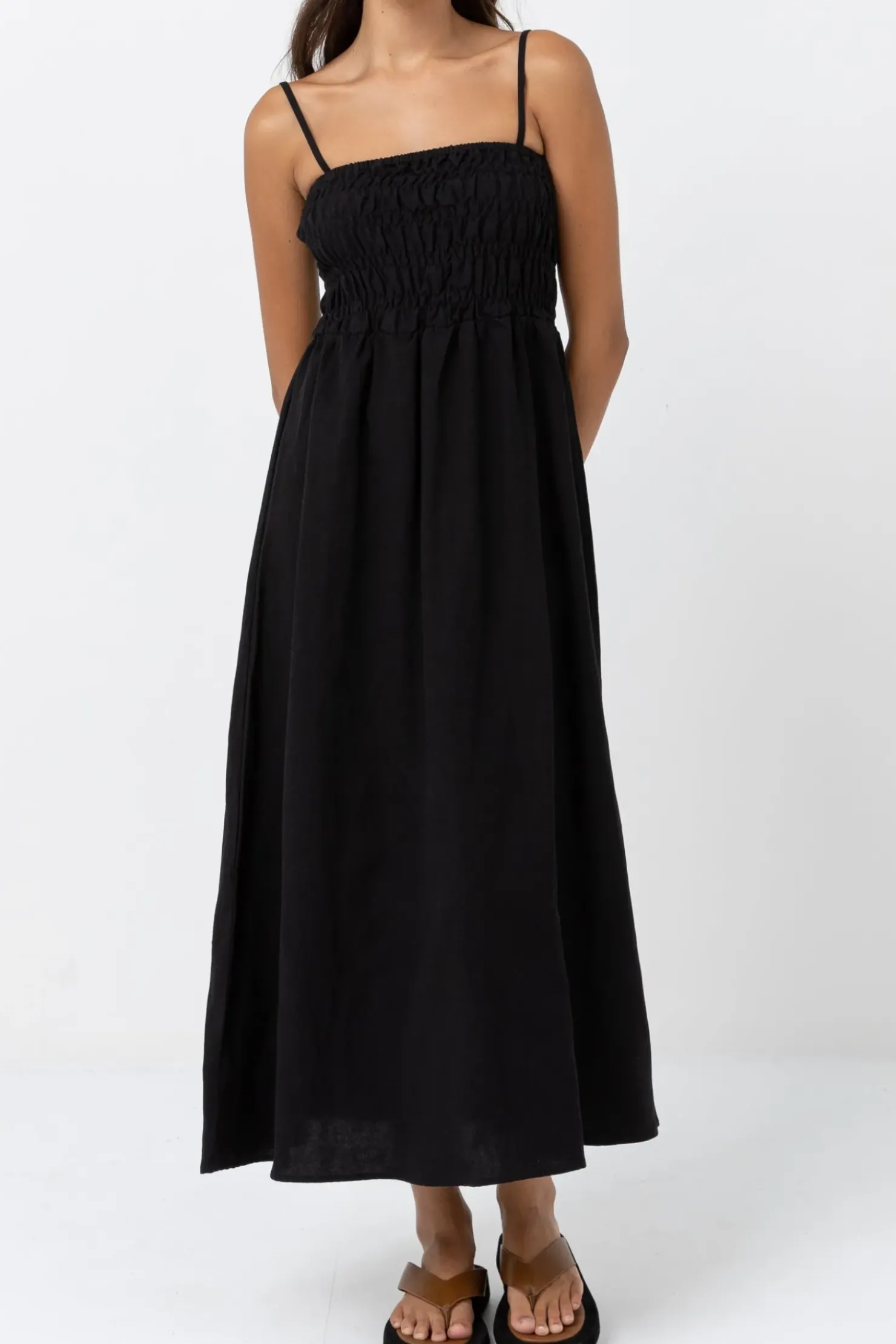Made for breezy summer days and effortless everyday wearing, the Classic Shirred Midi Dress features a smocked front and back bodice, straight neckline and adjustable straps a season essential.