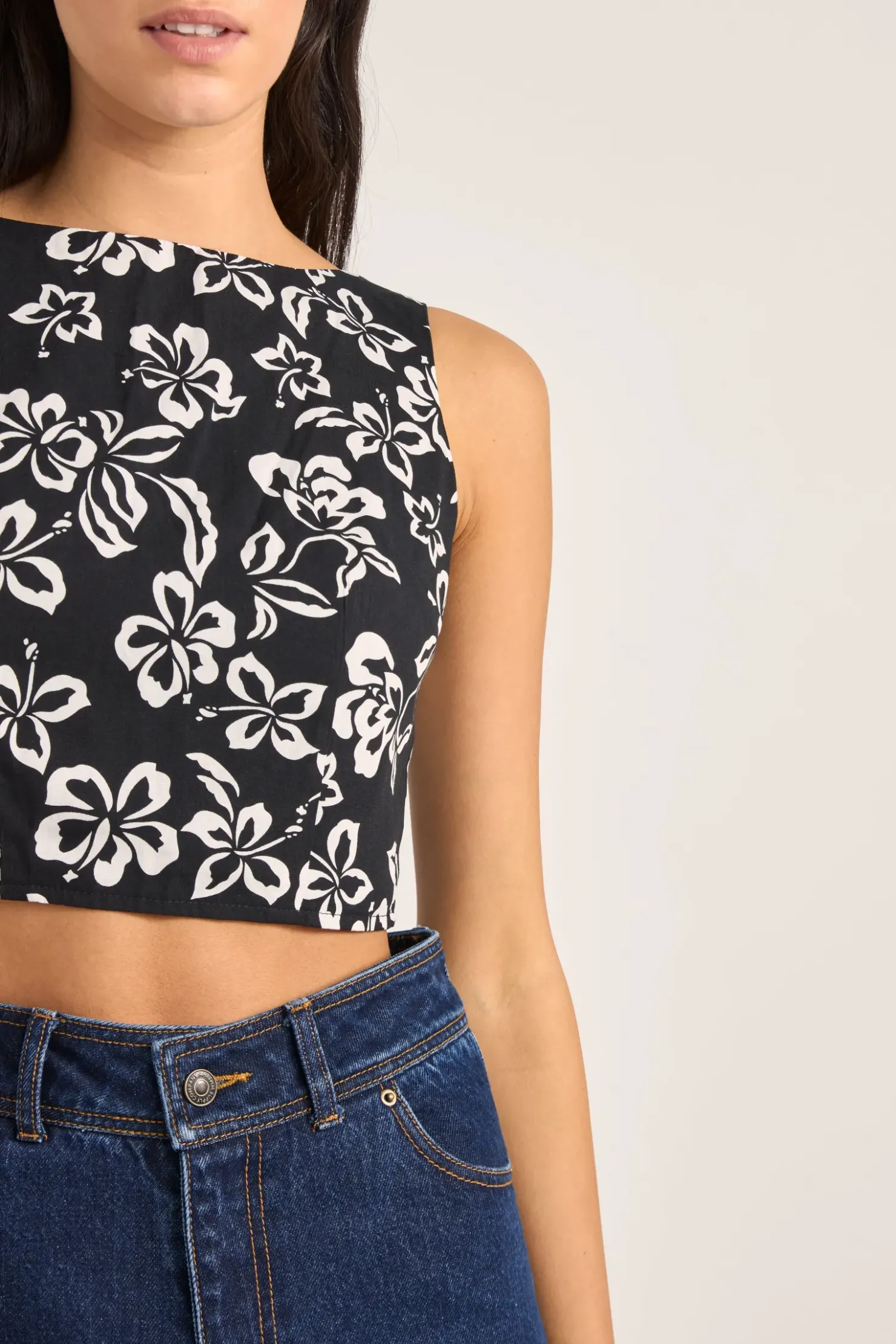 Add a tropical touch with the Roselle Tie Back Top in Roselle Floral. Featuring a boat neck, tie back closure, and playful print, it’s perfect for laid-back summer days.