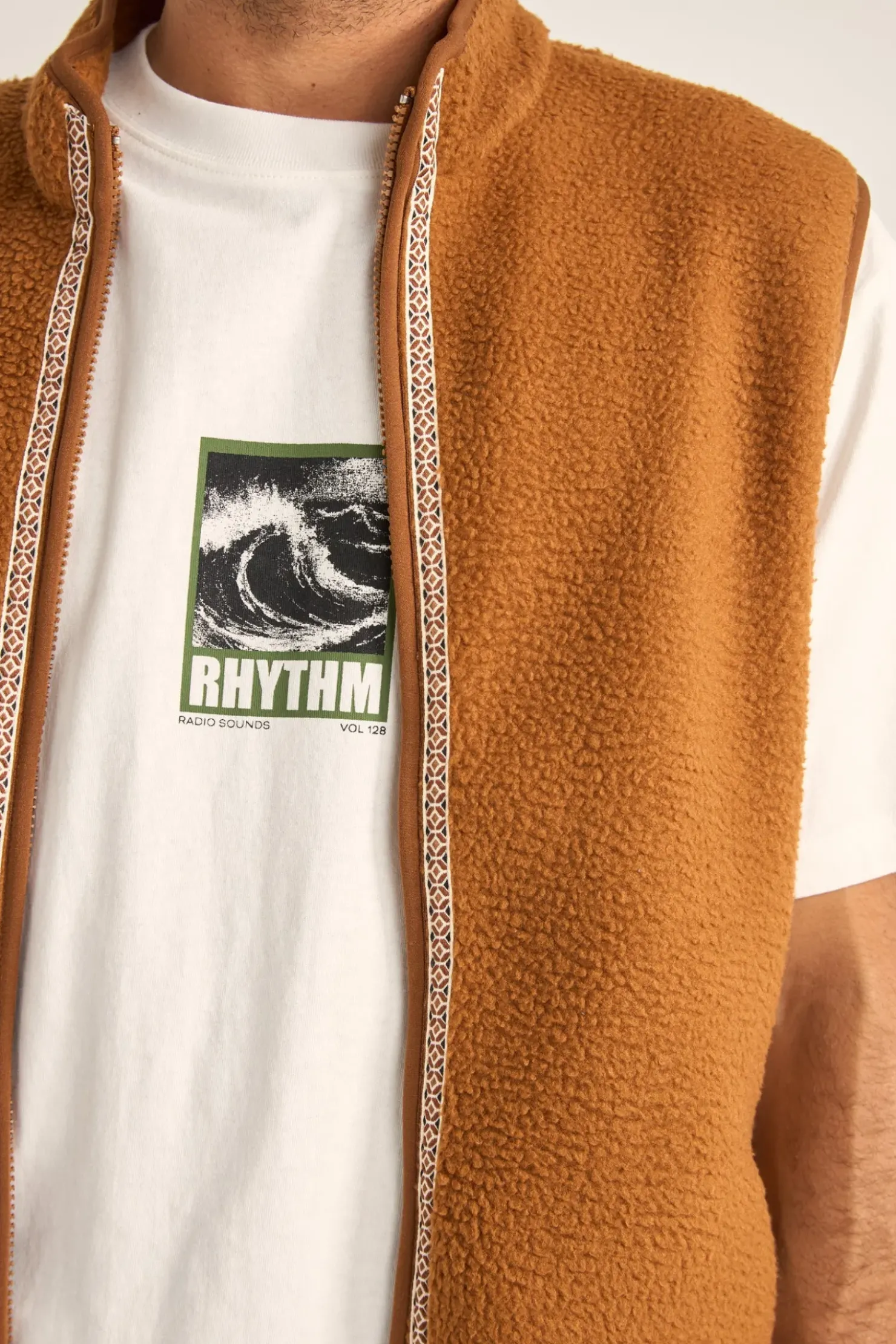 Introducing the Marco Sherpa Vest in Tobacco, a boxy vest designed for coastal style. Featuring a cozy sherpa texture, contrast trim, and zipper closure, it’s perfect for layering and adding warmth to your look with a touch of rugged charm.