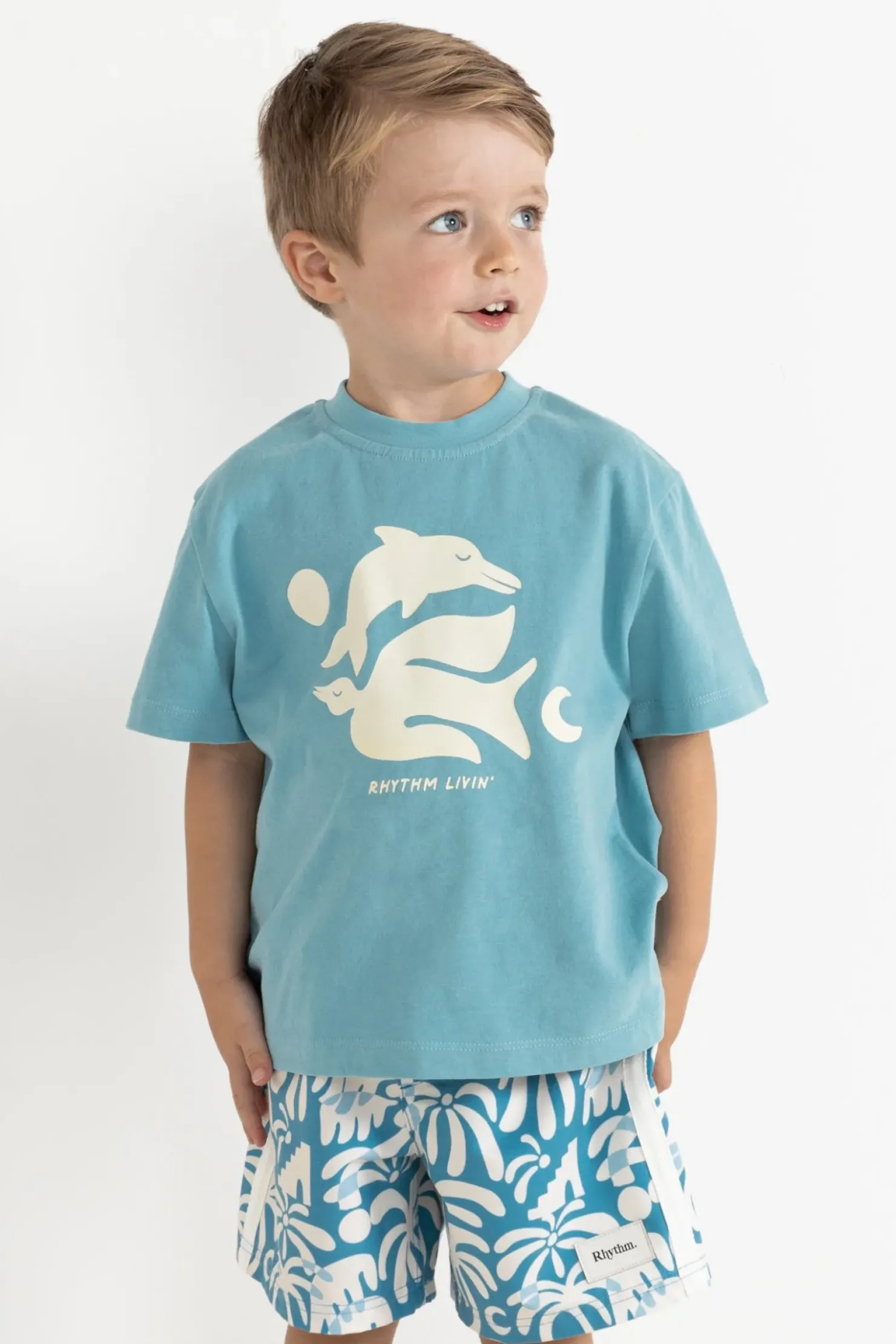 This relaxed-fit tee in a bold blue shade offers soft cotton jersey comfort with a touch of whimsy through its playful graphic print. Perfect for adventurous little ones who love to stand out.