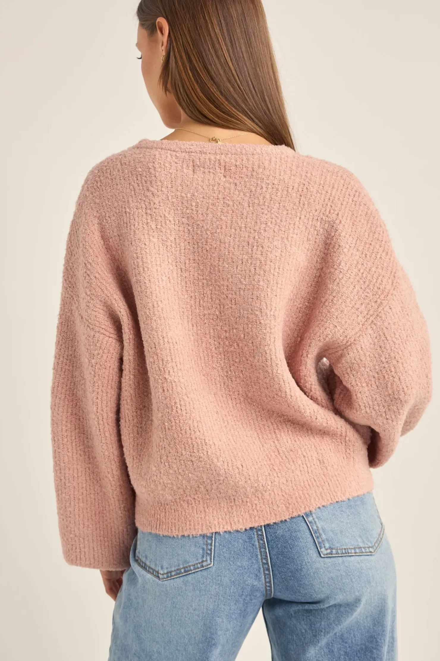 The Pink Quinn Knit Jumper wraps you in a cosy layer of soft acrylic, nylon, wool, and spandex blend. With a relaxed fit, balloon sleeves and crew neck, a warm addition to your coastal outings. Featuring rib ban at the neckline, hem and cuffs, it perfectly captures the sweet comfort of breezy beach mornings.