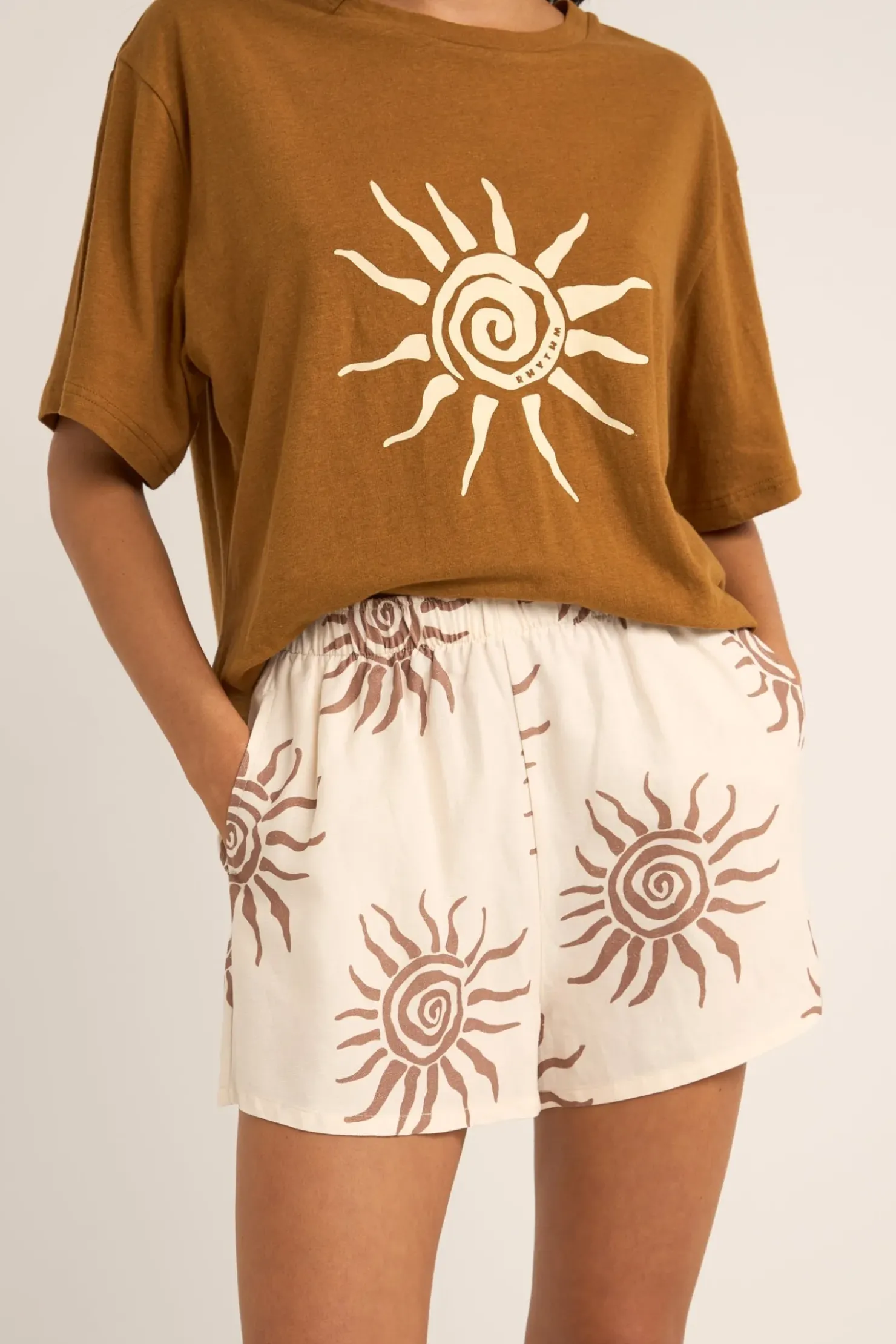 The Brown Seafarer Shorts, in a soft rayon-ramie blend, offer high-waisted comfort with multi row stitching for added detail. Designed for the adventurer, their relaxed fit and side seam pockets are perfect for discovering hidden beaches or lounging under the sun.