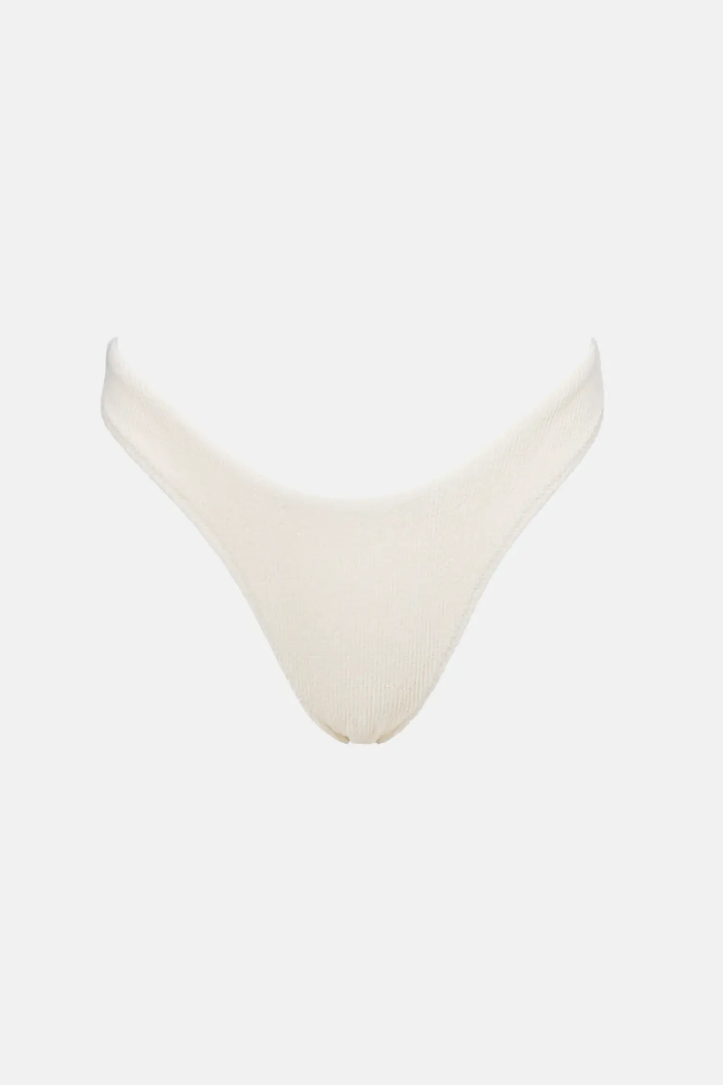The crème high-cut pant delivers a refined look with white contrast binding and a high-rise fit. Brief coverage and the Rhythm metal coin logo complete the design.