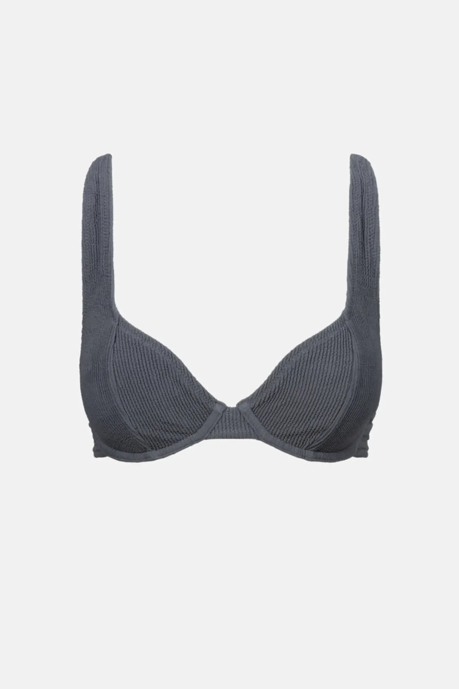 This graphite underwire top offers a secure, flattering fit with adjustable straps and gathered detail. Ideal for A-D cup sizes, it’s finished with a Rhythm-branded clasp.