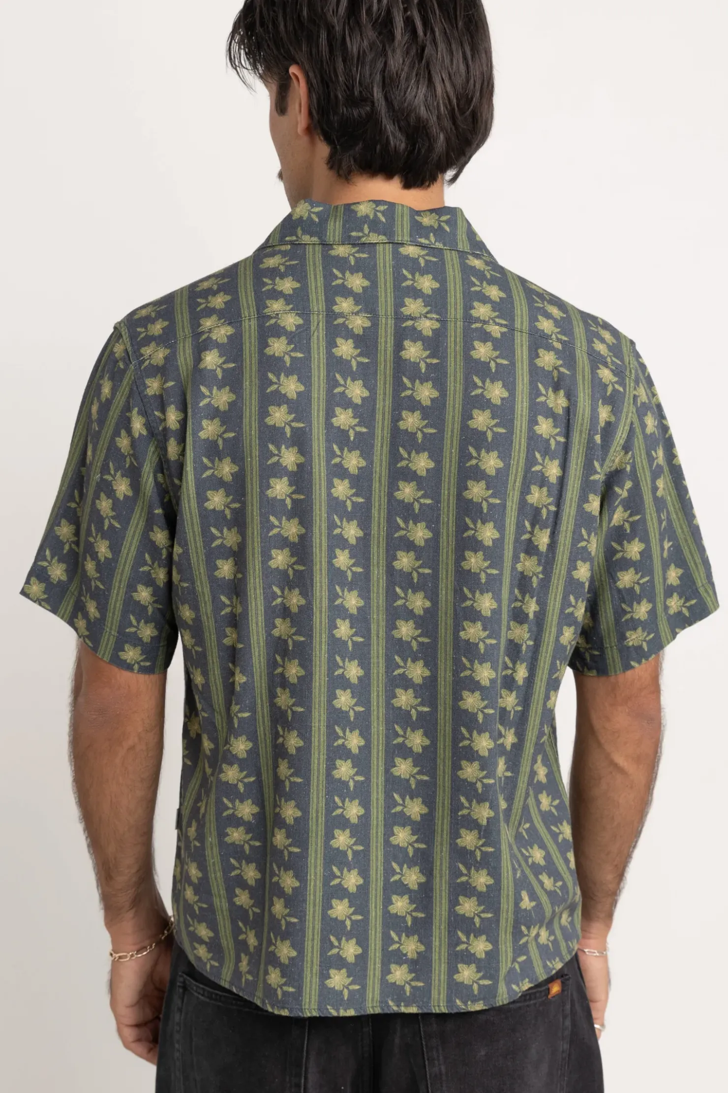 Stand out in the Overlap SS Shirt in Stone Blue. Featuring an all-over print and cropped fit, it’s finished with dyed-to-match buttons for an effortlessly coordinated look.